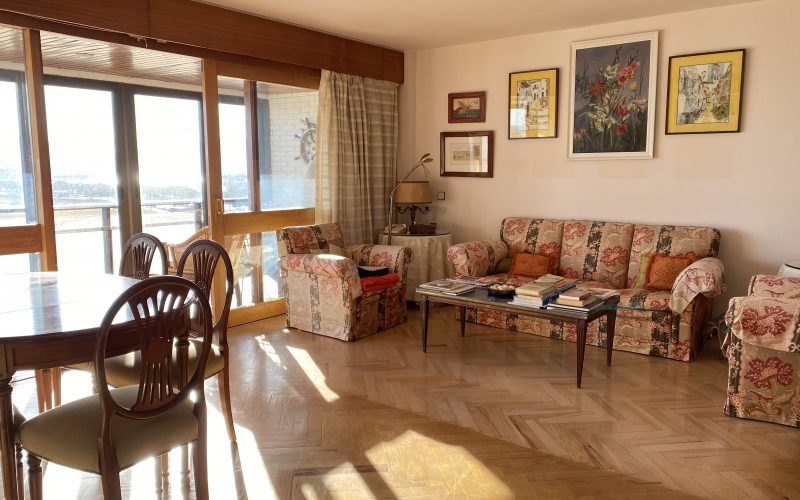 Situada en una sexta planta en esquina, cuenta con una superficie de 115 m² útiles. Se distribuye en un amplio salón-comedor, cocina con office, un dormitorio principal muy espacioso (resultado de la unión de dos estancias), dos dormitorios adicionales y tres baños, dos de ellos exteriores.